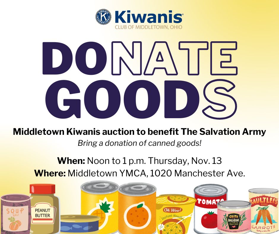 This year the Salvation Army is making a specific request for canned goods (especially proteins like tuna and chicken as well as vegetables) to restock their shelves. Bring canned goods and cash for bidding.
